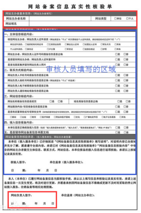 上圖就是網(wǎng)站備案信息真實性核驗單的截圖,圖中我做的有標記,紅色區(qū)域是我么需要填寫的,而中間很大一塊區(qū)域是審核人員填寫的,所以我們要填寫的其實也就頭部和底部兩個地方就可以了。之后我們還需要填寫一式三份給他們寄過去,至于寄送到什么地方,備案系統(tǒng)里面有詳細的地址,我們只要按要求寄送就可以了。