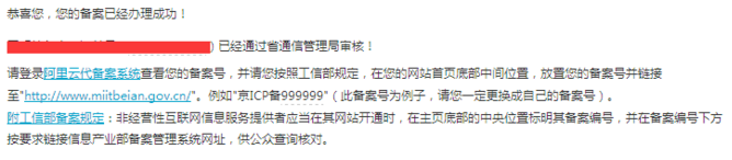 管理局審核通過以后,會以手機短信和郵件的形式通知你備案完成,至此我們的網(wǎng)站備案就成功了!