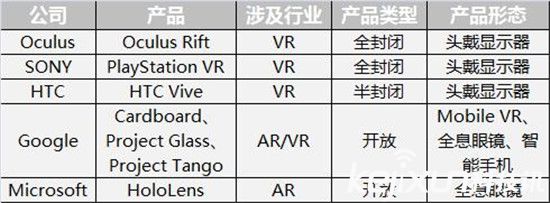 Oculus、SONY、HTC、Google、Microsoft,目前硬件領域公認的五大領跑者: