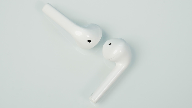 耳機柄與腔體的銜接部分為耳機的觸控區域,頂部開孔為后腔調音孔,與之對應的是耳機內側的前腔調音孔。