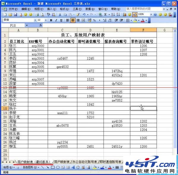 首先,通過Execl新建一名為“映射表”的工作薄,設計好“用戶映射表”的結構,導入所有員工姓名(圖1)。其次,將從各應用系統數據庫中導出的賬號表保存為Execl表格,并導入至“映射表”工作...