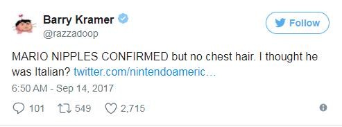 《奧德賽》新演示馬里奧露出了乳頭 結(jié)果遭瘋狂調(diào)侃
