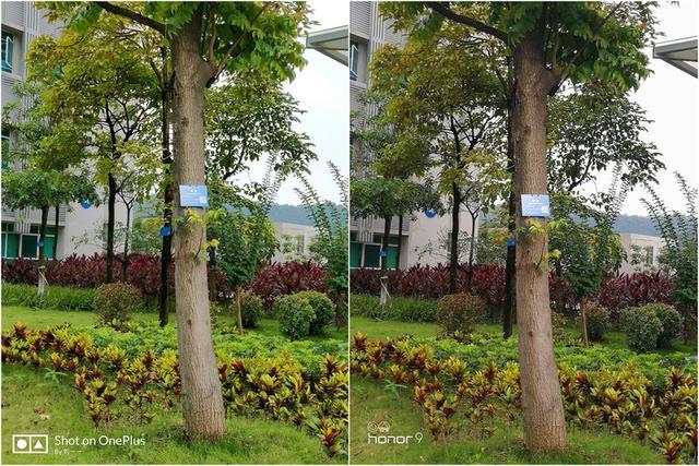 通過以上 2 倍變焦的拍照樣張來看,二者表現(xiàn)差距明顯變大,但二者表現(xiàn)都沒有普通模式下優(yōu)秀。除了之前所說的一加 5 的整體畫面要比榮耀 9 亮以外,在 2 倍拍照下,差距榮耀 9 的涂抹感要相對強一下,但畢竟一加 5 采用的是“廣角+長焦”的雙攝方案。其次,在對遠處的樹葉脈絡(luò)處理來看,榮耀 9 對細節(jié)處理的不夠干凈,同時也不夠細膩。對于一加 5 來說,雖然能夠看清脈絡(luò)紋理,但是在細膩程度上,還欠缺點火候。