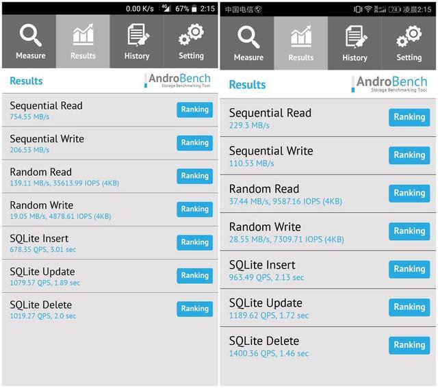 (左:一加5 | “AndroBench” | 右:榮耀9)