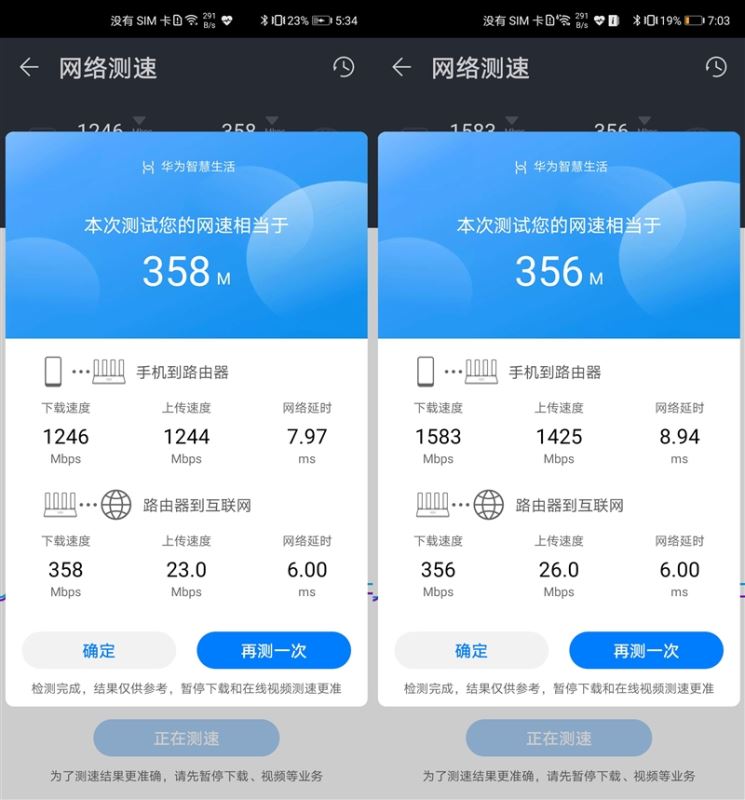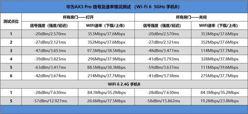 根據(jù)結(jié)果不難發(fā)現(xiàn),采用凌霄芯片的華為路由AX3 Pro在Wi-Fi 6下對于兩款不同Wi-Fi 6方案的手機都有著不錯的支持,能夠滿足覆蓋整屋的需要。