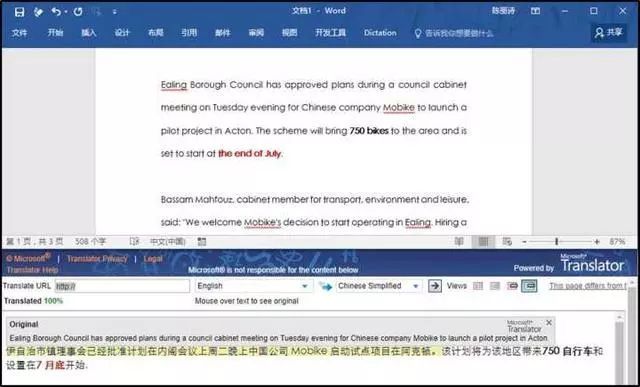 和在網(wǎng)頁上翻譯相比,它最大的優(yōu)點(diǎn)是可以保持文檔的原有格式。