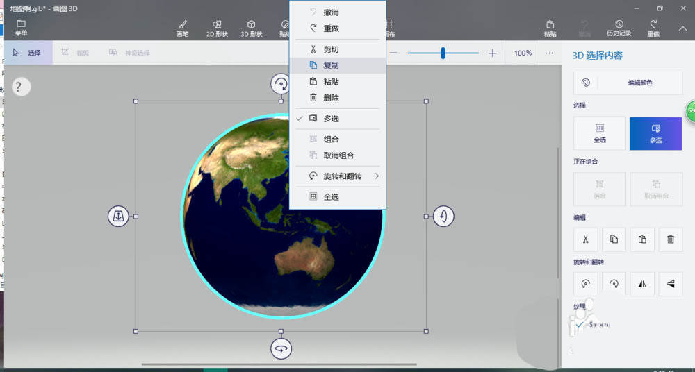 3、所以我們直接在畫圖3D軟件中選中模型——復制——粘貼即可導入到PPT中。親測有效!(可能一次粘貼不行,需要多粘貼幾次)。