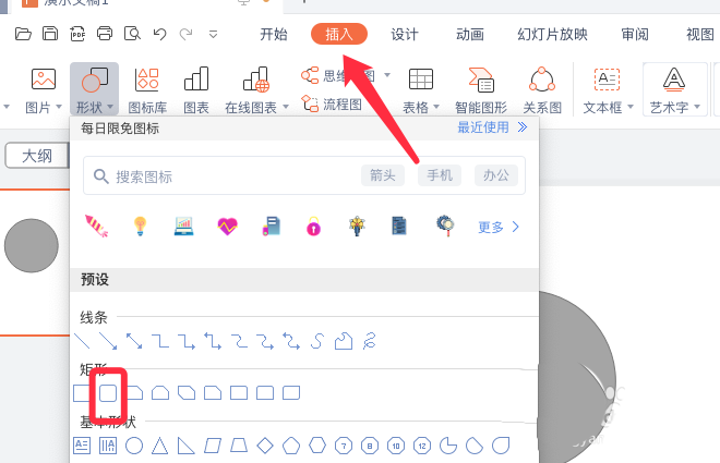 2、插入形狀,選擇圓角矩形,插入一個(gè)圓角矩形。