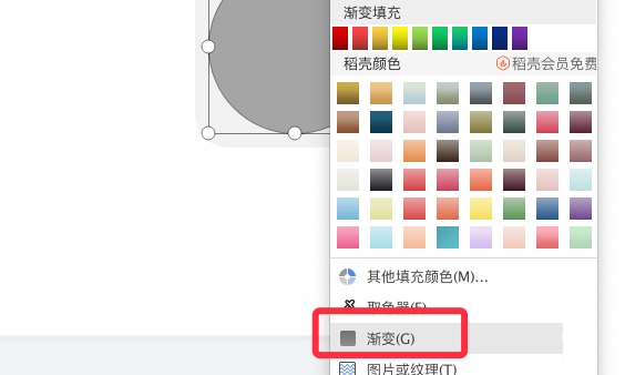 4、再點(diǎn)擊選中圓形,選擇漸變填充。