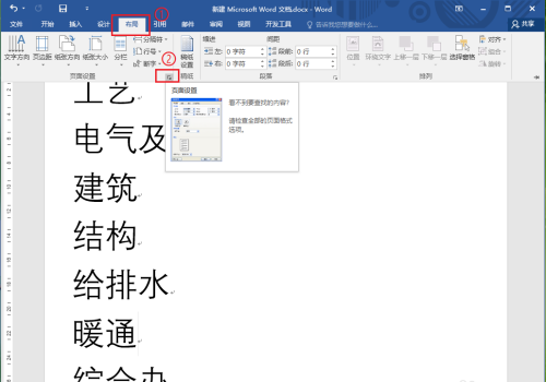 3、依次點(diǎn)擊【布局】選項(xiàng)卡>>【頁(yè)面設(shè)置】按鈕。