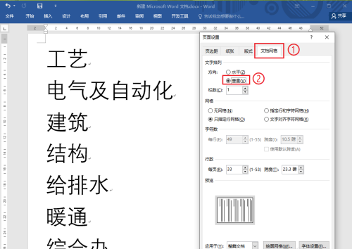 6、點(diǎn)擊【文檔網(wǎng)絡(luò)】,文字排列選擇“垂直”;