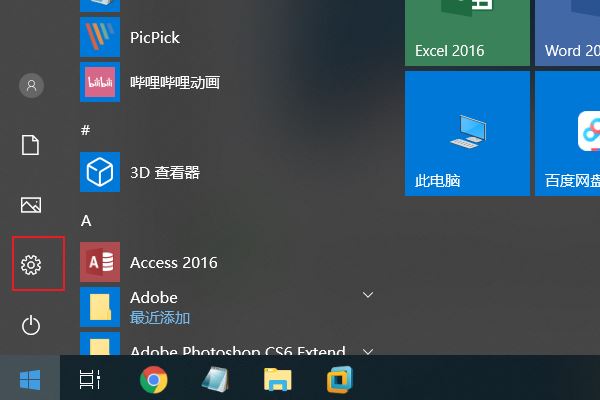 1、點擊桌面左下角的開始菜單,再點擊上面的設置圖標。制