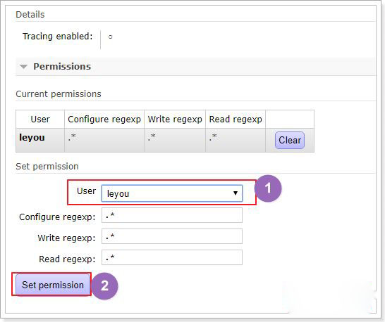 rabbitmqctl set_permissions -p / admin “.*” “.*” “.*”