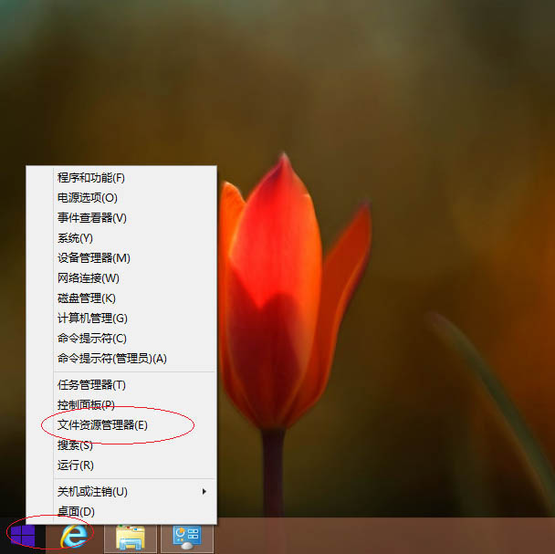 3、彈出快捷菜單選項(xiàng)列表,選擇"文件資源管理器"項(xiàng)