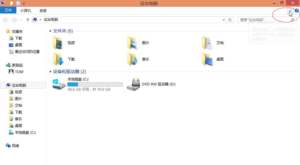 4、點(diǎn)擊右側(cè)"展開(kāi)功能區(qū)"向下按鈕
