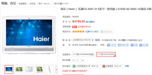 硬件配置上,這款海爾樂趣C5配以Intel賽揚G1620處理器、4GB 內存、500GB硬盤;內嵌nVidiaG610M獨立顯卡,擁有21.5英寸屏幕,DVD刻錄光驅,預裝 DOS系統(tǒng)。