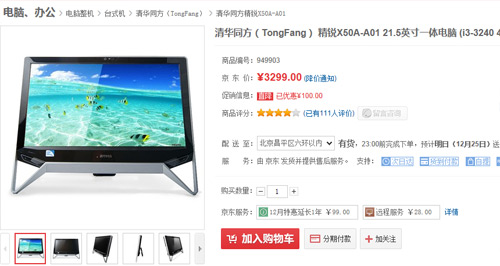 硬件配置上,這款清華同方精銳一體電腦配以Intel酷睿i3-3240處理器、4GB 內存、500GB硬盤;內嵌AMD HD8350獨立顯卡,擁有21.5英寸屏幕,DVD刻錄光驅,預裝DOS系統(tǒng)。