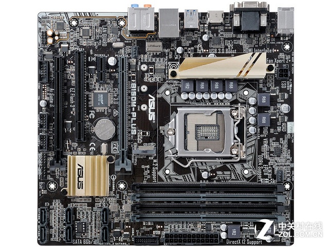 華碩B150M-PLUS基于IntelB150芯片組設計,LGA1151接口支持第六代酷睿系列處理器,六相數字供電能為處理器提供強大電力支持。擴展插槽部分,雖然是一個緊湊型小板,可還是提供了兩條PCI-E3.0x16擴展插槽,一個PCI-E3.0x1插槽,支持AMDCrossFireX雙顯卡交火。