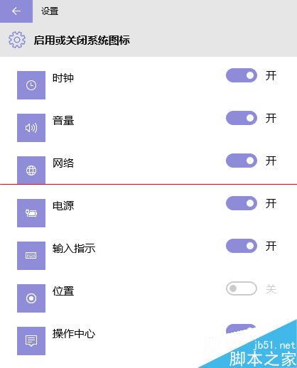 4、對于不需要在任務欄顯示的系統圖標,也可以在這里關閉:"通知和操作">>>"關閉或啟用系統圖標"。如圖: