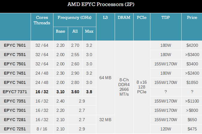 近日,AMD悄然推出了一款EPYC 7371,仍隸屬于第一代EPYC,最大特點就是高頻。
