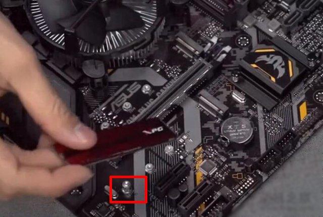 根據固態的尺寸來安裝銅螺柱,這款固態硬盤尺寸是2280的,我們將銅螺柱擰到第一個位置上,如下圖所示。