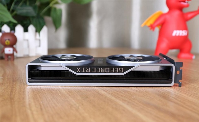 該顯卡整體依然延續(xù)雙風(fēng)扇“煤氣灶”外形設(shè)計,沒有NVlink,單8pin外接供電。長度約為23cm,比RTX2080 Ti要短一些。