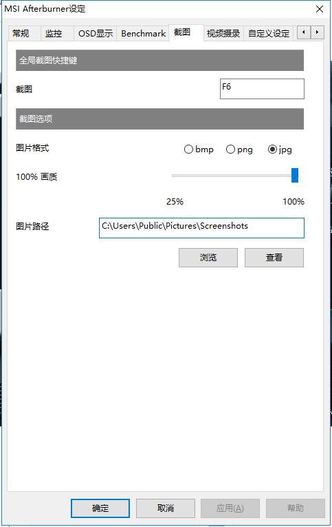 如果有截圖需要的朋友,切換至“截圖”選項卡,我們將快捷鍵修改至“F6”,個人習慣修改吧,并確定,還有視頻攝錄功能,可以去看看。