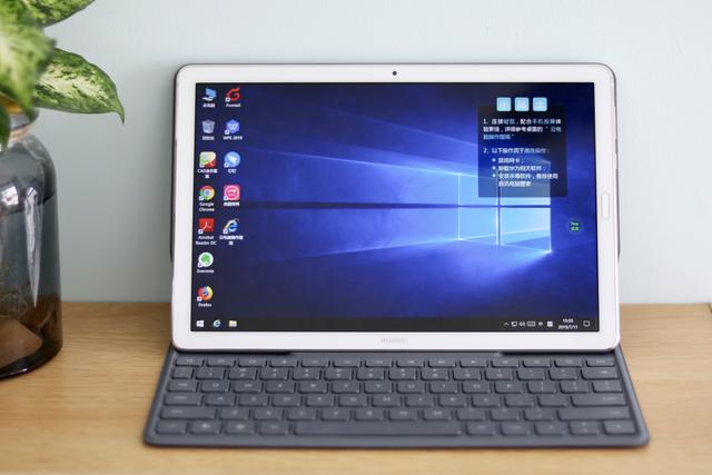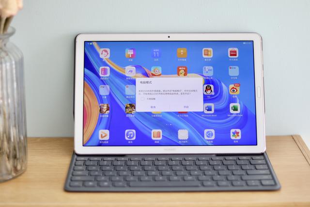 我們先來看華為平板M6 10.8英寸的電腦模式,華為重新設計優化了平板的電腦模式,打開方式有兩種,一是在正常的安卓下拉菜單里面打開,二是連接磁吸鍵盤就會彈出打開窗口,非常方便。