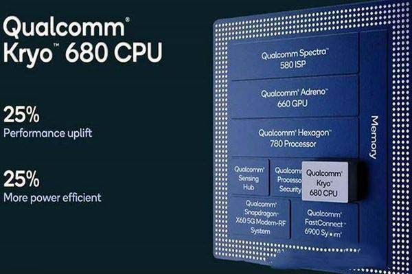驍龍888采用了全新的Kryo680架構,CPU采用“1+3+4”的八核心設計。首次加入超級核心Arm Cortex X1,主頻2.84GHz,三個A78架構核心,主頻2.4GHz,四個A55能效小核心。整體CPU和上一代相比提升25%,Adreno 650 GPU渲染速度比上一代提升35%。總體來說,這是除了蘋果A14芯片之外,又一個強勁的5G移動平臺。高通自己也說,驍龍888在GPU性能方面,是迄今為止升級最大的。