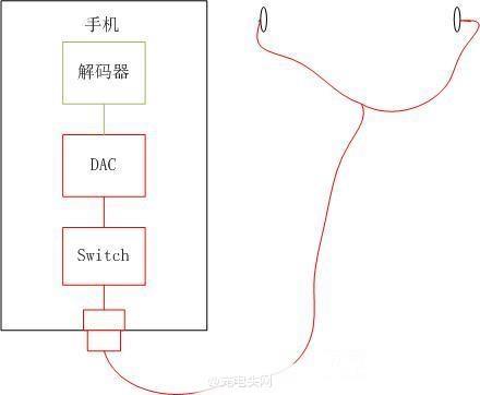 圖1為傳統模擬TYPE-C耳機音樂傳輸通道,紅色部分為音質損失,對于國產android手機來說,內置DAC已經對音質造成了最主要的音質損失。而且在進入TYPE-C口之前,還有個模擬開關用來切換音頻模式還是數字模式,然后經過TYPE-C接口,再經過耳機線,傳送到左右兩個揚聲器。其中,最重要的音質損耗在DAC部分,其他部分,只是理論上有損耗,未必真的損失聽覺效果。