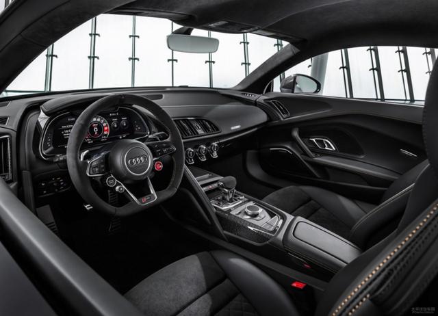 賽車桶椅、平底運動方向盤、極為簡約直觀的MMI交互系統+全液晶儀表盤,是駕馭好身后那臺暴躁5.2L V10引擎的不二法寶。