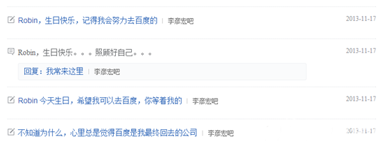 從這位吧友的其它貼子看來,他很可能是華東師范大學的在校生。鑒于他對Robin如此崇拜,并且表達了希望去百度工作的愿望,相信用不了多久,百度的HR就會見到這位吧友的本尊。另外這位很可能是工科生的同學,還關注了蘇格拉底吧和穆斯林的葬禮吧。如此文理兩相宜,又敢于向全球科技巨頭毫不掩飾的表達仰慕之前,前途十分令人期待!
