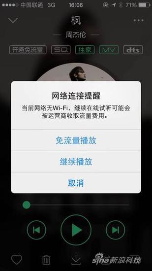 不過,作為一個用流量聽歌的人,每開啟一首歌都會受到使用流量播放的提示,也是覺得挺煩躁的。