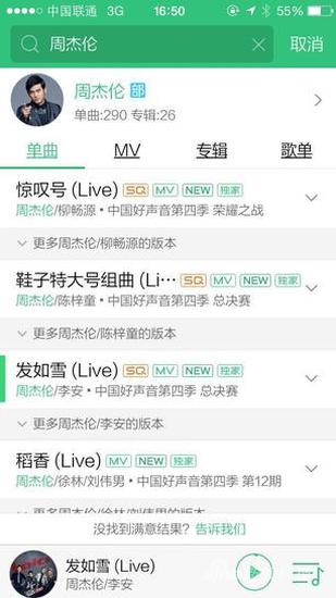從版權上,我們要再次搬出周杰倫小公舉了,網易云里面的版權雖然比蝦米多了不少,但是買了中國好歌曲第三季、我是歌手第四季版權的QQ還是會秒殺前兩者,這種版權優勢雖然往往與節目的播出時間之間相關,但是,確實能吸引不少樂迷前來下載。