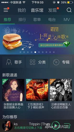 無意標榜自己音樂素養高欣賞水平高,但至少QQ音樂推送并不符合個人胃口。比如民謠上來居然推了李建和馬頔,雖然這倆人靠選秀火了,但喜歡馬頔的以前該的早聽了,而李建雖然清新但是整體和原創民謠并不完全相同;熱門歌單有張碧晨和花花新歌速遞是饑餓鳥3原聲大碟,這種逮見主流不分品質上來就推的精神,實在是毫無品質調性可言。所以算方法推薦這塊直接給了最低分,算是任性了一回。