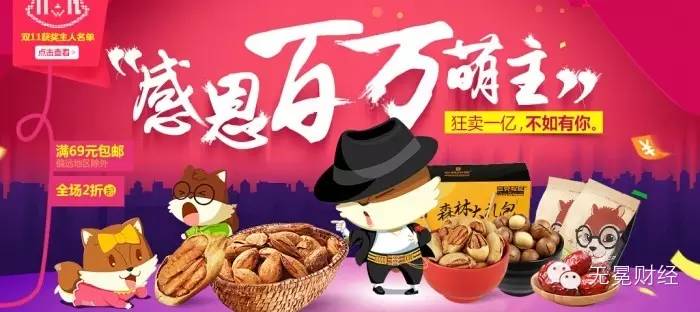 ▲三只松鼠“雙十一”宣傳海報,2015年“雙十一”期間創(chuàng)造了2.66億的業(yè)績