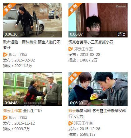 鄭云是中國著名的喜劇演員,現(xiàn)任中國微電影協(xié)會常務副會長,被譽為“網(wǎng)絡短劇帝”、“微電影之父”、“中國手機電影第一人”。擁有龐大的群眾基礎,其粉絲數(shù)高達上千萬。在全國各大網(wǎng)站、移動手機終端、多家地方電視臺、公交地鐵電視及Youtube、Face book、Google+等國外主流網(wǎng)站設有鄭云工作室微電影專區(qū);在澳大利亞、韓國、美國、英國等地均設有鄭云微電影愛好者工作站。相信很多人都看過他的作品,他的微電影搞笑幽默,深受廣大觀眾喜愛。其代表作有《零落岸邊蘆荻花》、《致命遇險一百種自救》、《腦洞大開》、《盜墓筆記之英國歸來》、《微愛之終入佳境》、《青島大蝦后續(xù)》、《人生需要一個轉身》以及網(wǎng)絡大電影《肖申的救贖》、《祖業(yè)》等等。到目前為止,鄭云工作室所拍微電影作品已達八百多部,他所自編自導自演的優(yōu)秀影片不勝枚舉,其作品的全球瀏覽量超過百億人次,人氣不輸papi醬。下面,我們來看看鄭云和papi醬的視頻播放量截圖。
