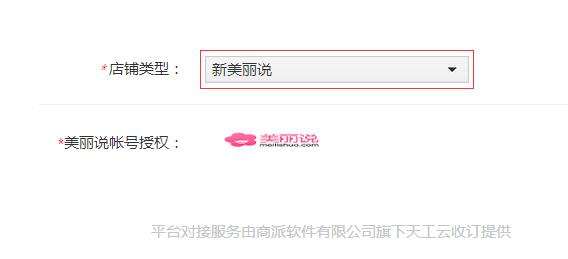 ② 在彈出窗口中的店鋪類型選擇“新美麗說”, 點擊”美麗說”圖標LOGO進行授權。如下圖: