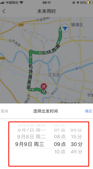 5、這里已經(jīng)顯示 就今天出發(fā)時間,預計到達時間,下面也有預估時間,出發(fā)時間出可以調(diào)整時間